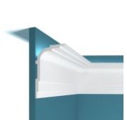 Карниз под подсветку из полимера используют для декорирования стыка стенки и потолка, а также скрытой установки светодиодной ленты. Потолочный багет имеет особую форму и внутренние полости, в которые удобно размещать шнур со светодиодами и небольшими контроллерами.
